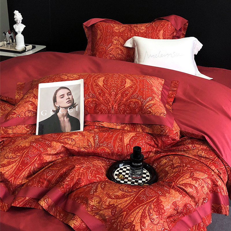 数码印花,花型亮丽,纹案寓意吉祥美好,绵延不断,具有细腻、繁复、华美的艺术特征,成为世界性图案