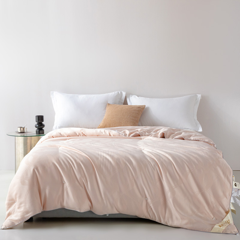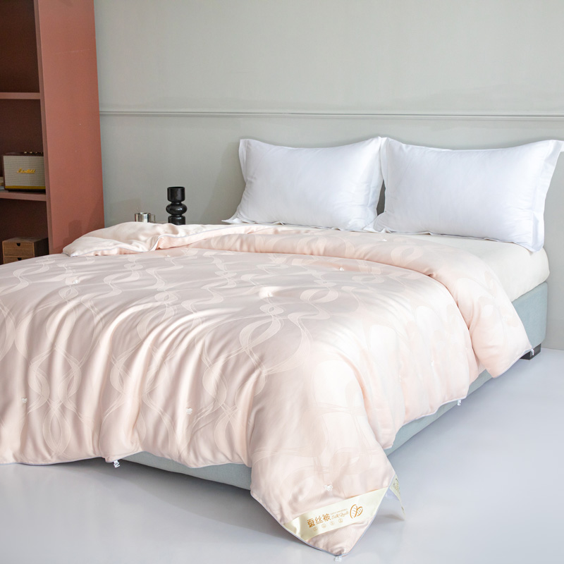 柞蚕丝纤软细腻,制成的被子贴合人体曲线,不易产生压迫感,让身体感知轻、细、柔的舒适体验