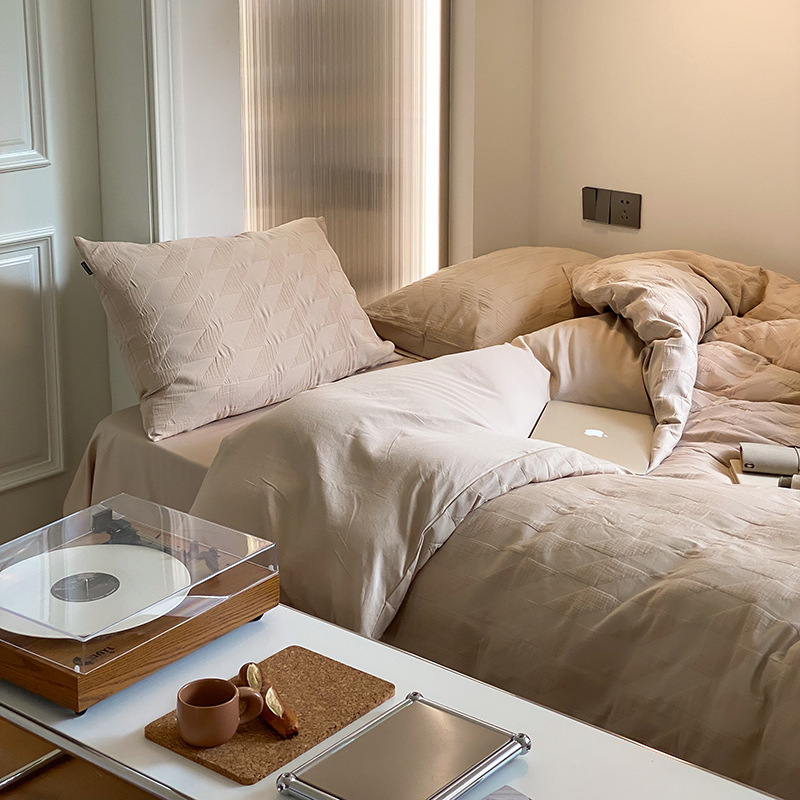 泡芙原棉水洗棉四件套