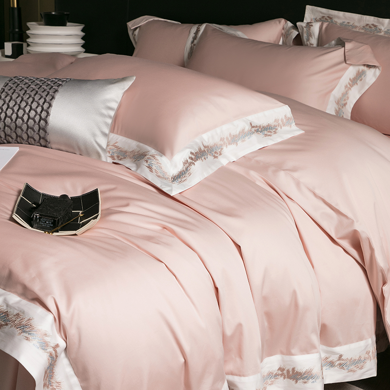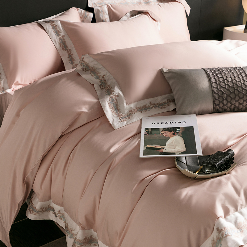 3. 采用优雅柔和的配色加上高精密的绣花设计,点缀床品层次,给视觉带来不一样的体验