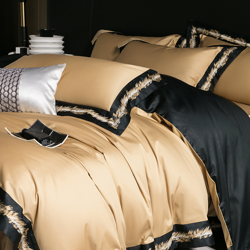 4. 同款枕套设计,易打理,床单圆角贴边,垂坠感好,YKK拉链,顺滑易拉,不易卡布,高端礼盒包装,大气高端