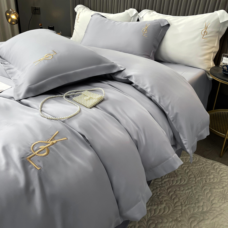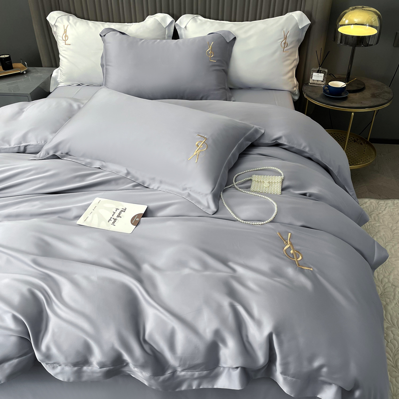 宽边枕套设计点缀被套同款绣花,简约大气,易拆洗打理,直角床单设计,垂坠感好