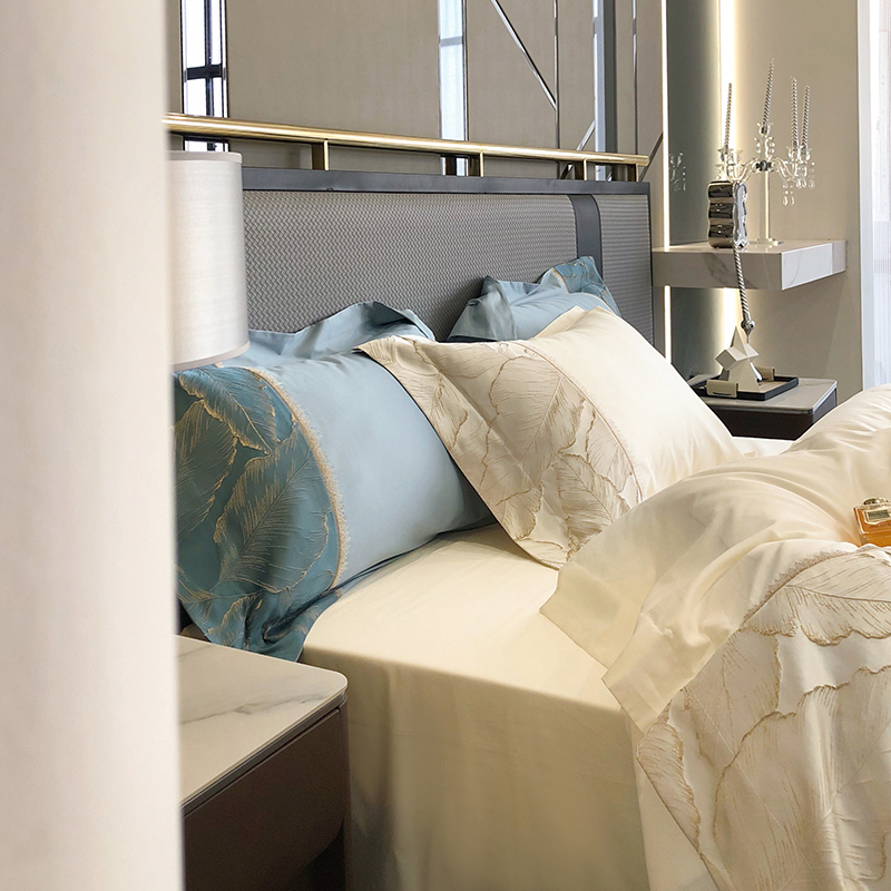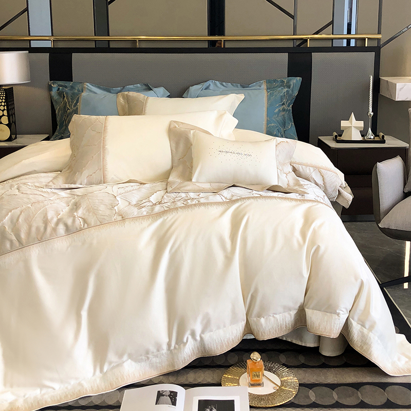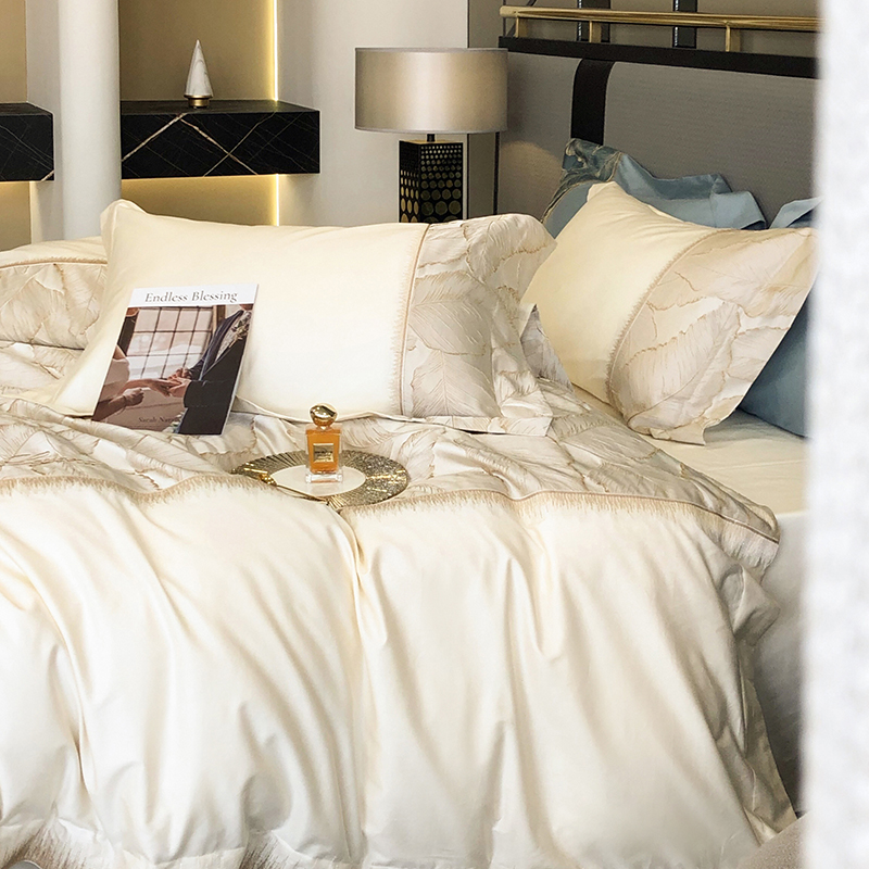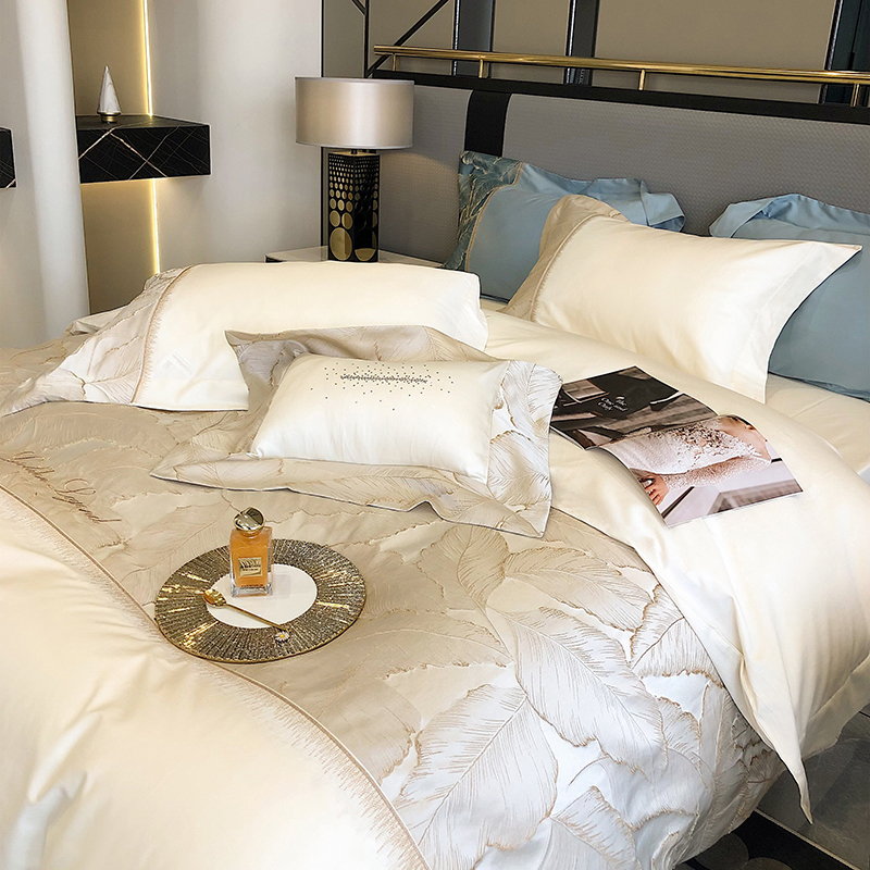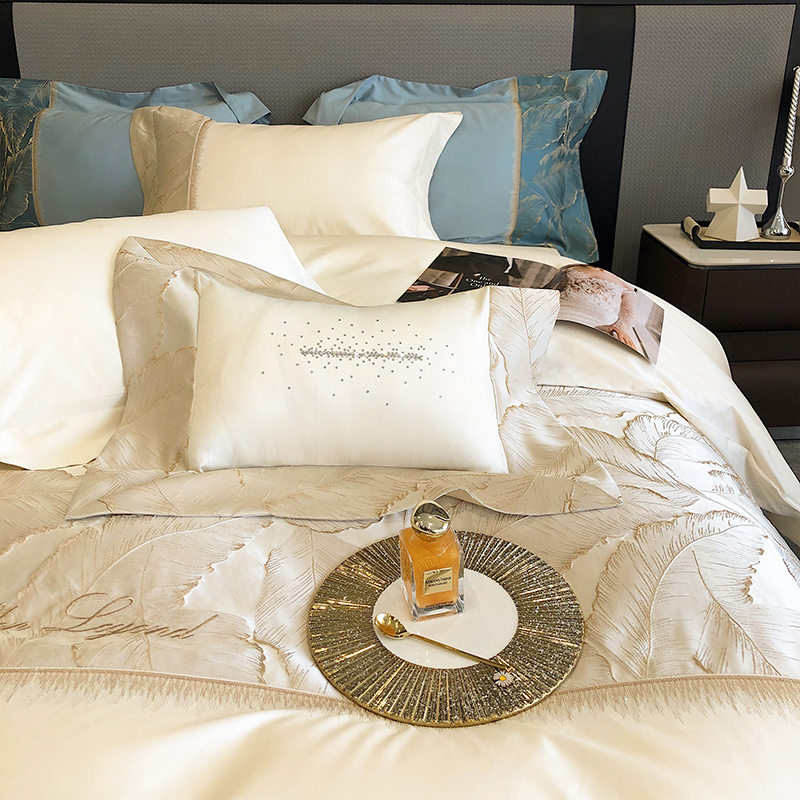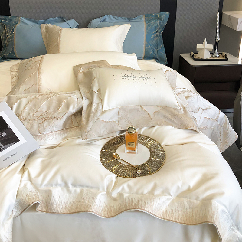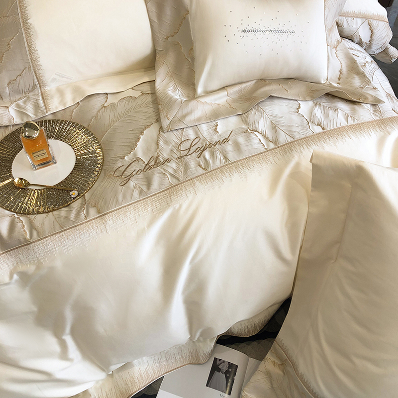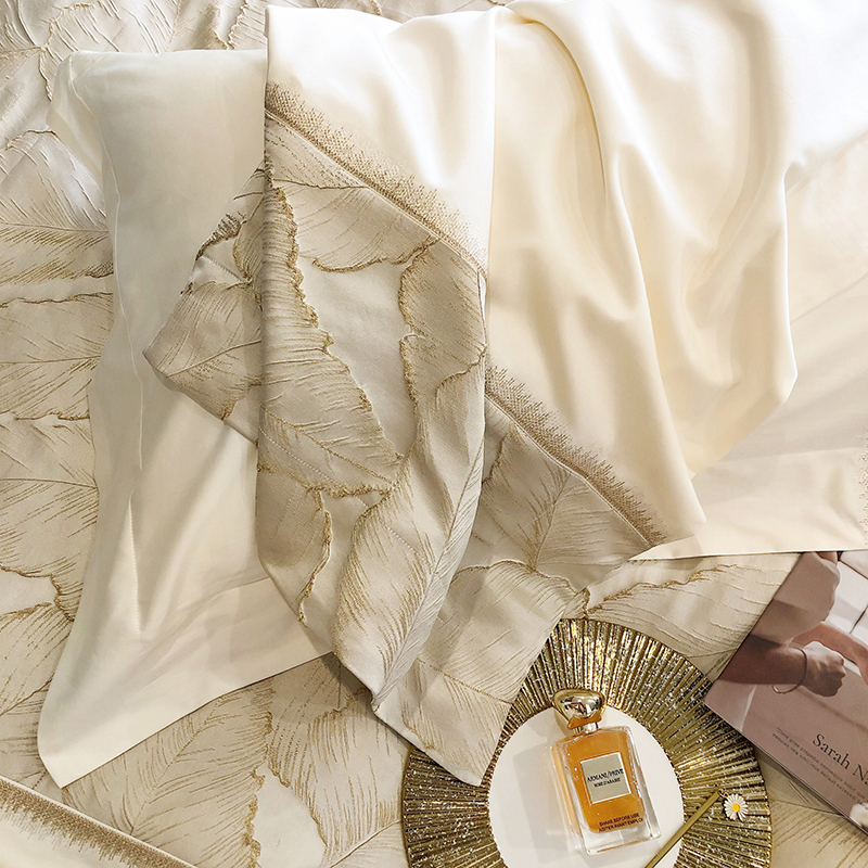 100S全棉轻奢刺绣提花四件套-金叶玉叶