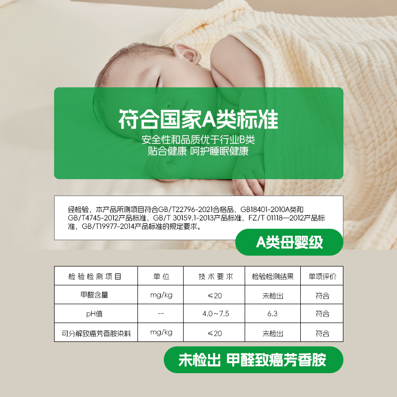 A类检测、无甲醛、无荧光剂、无芳香胺;