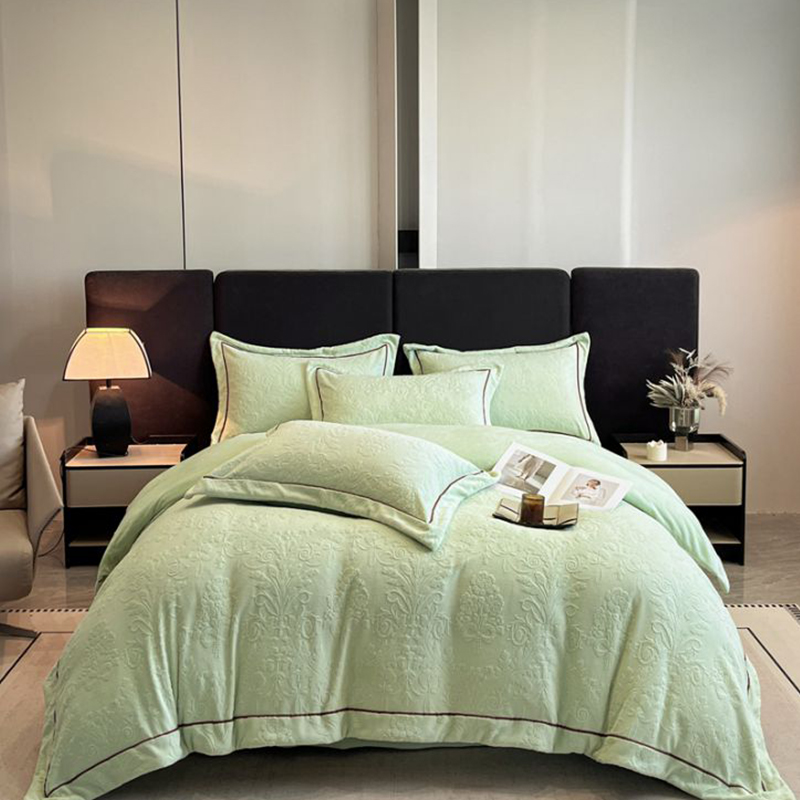 立体雕花牛奶绒织带款四件套