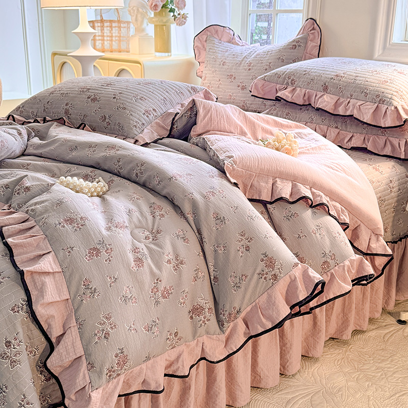 A类针织棉皱皱纱床盖款四件套