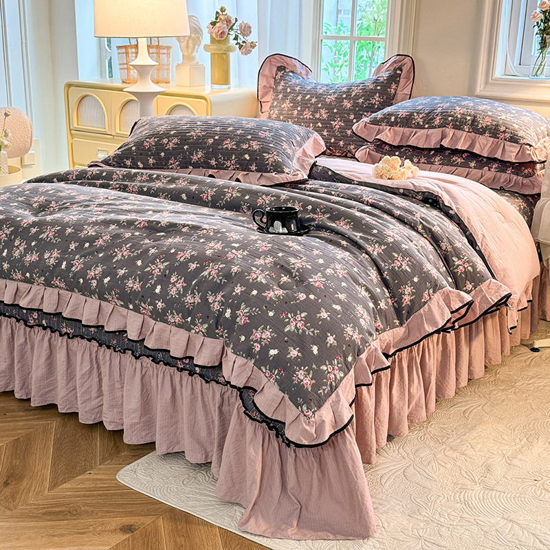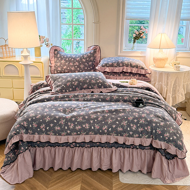 A类针织棉皱皱纱床盖款四件套