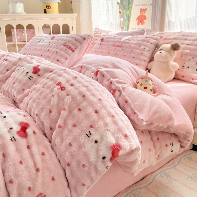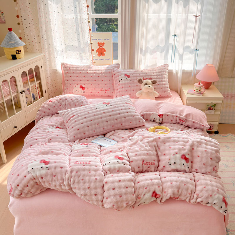 B泡泡牛奶绒四件套