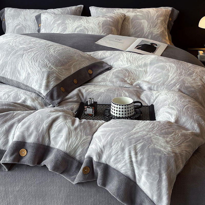 高克重着色烂花立体雕花牛奶绒纽扣款四件套