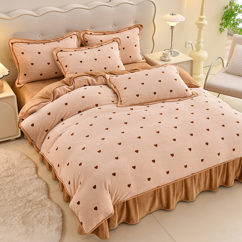 高克重床裙款印花牛奶绒四件套
