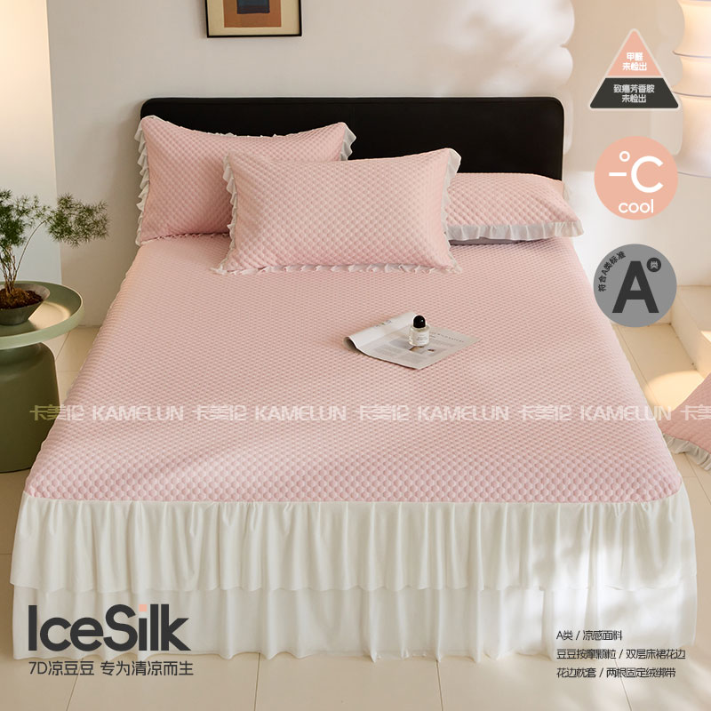 花边含氨纶,细腻柔滑有垂感,不易刮丝、勾丝、脱丝等,优雅双层床裙花边设计,增添层次感,让您的凉席充满美感。