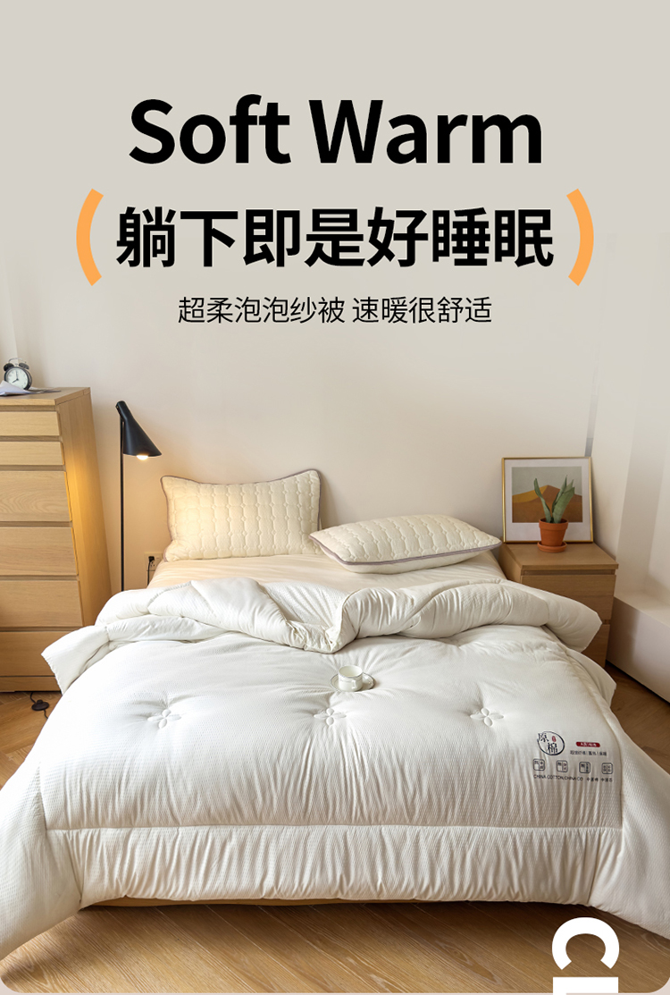 超柔泡泡纱被,速暖很舒适