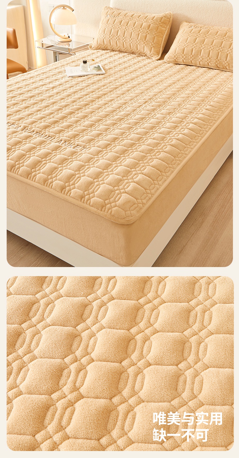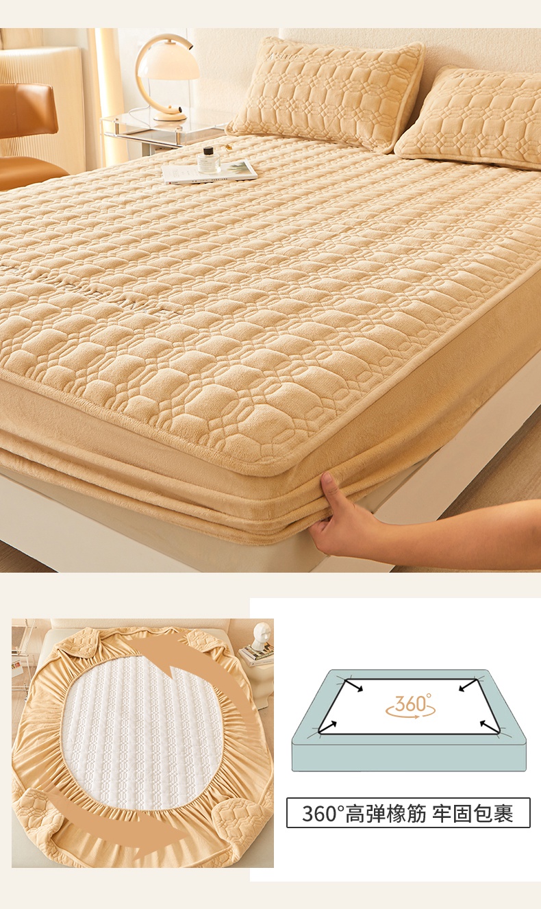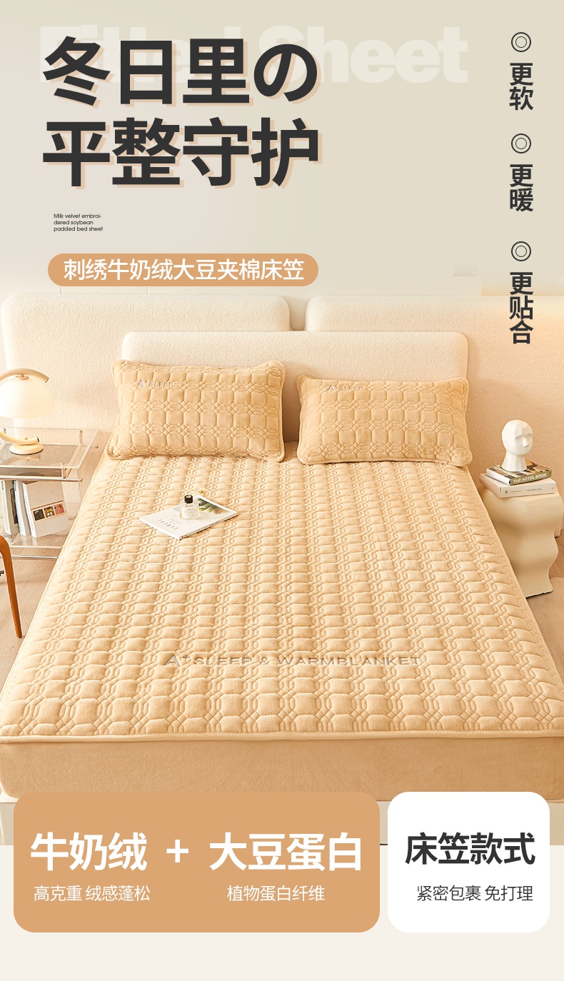 A类牛奶绒刺绣夹棉床笠