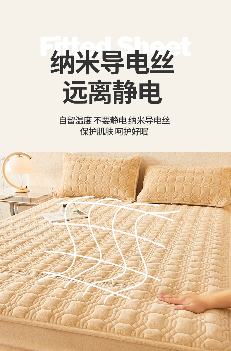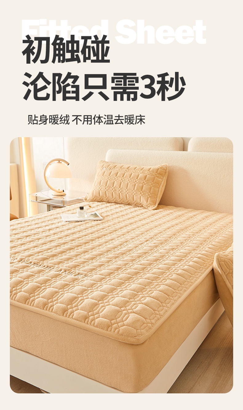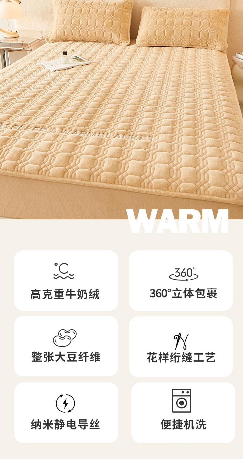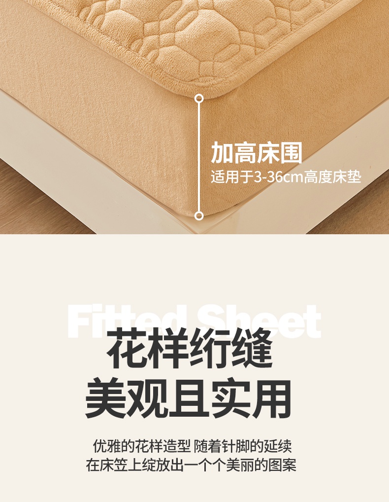 A类牛奶绒刺绣夹棉床笠
