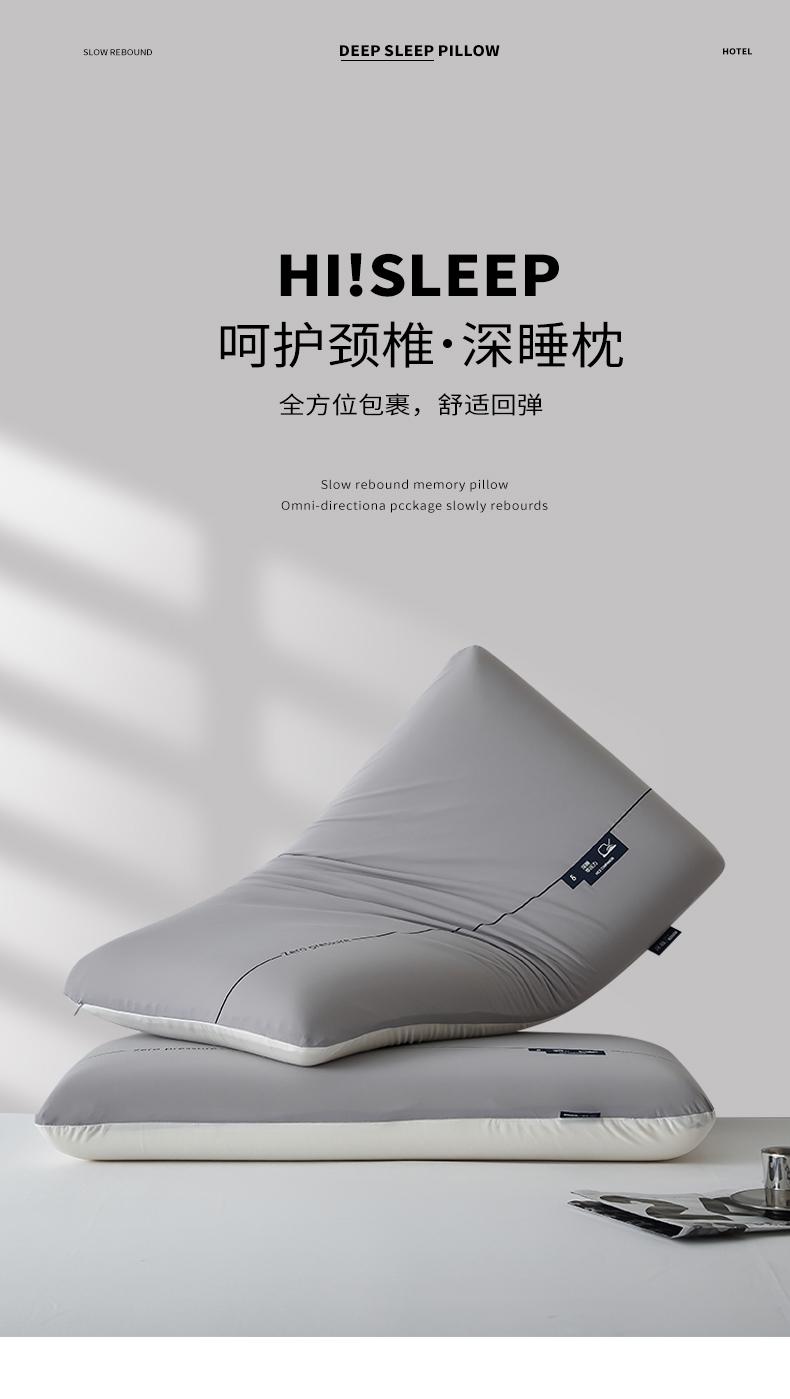 呵护颈椎深睡枕,全方位包裹,柔软支撑,舒适回弹,冰丝内套可拆洗,云朵裸肌面料,舒适透气